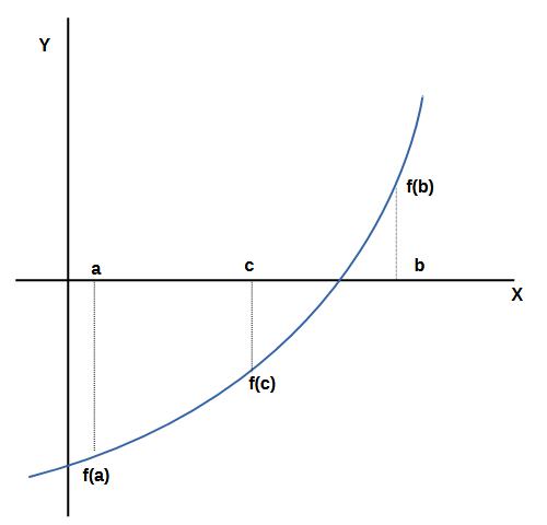 initial guess (a and b). The desired root (c) is located between the left point (a) and the right point (b).